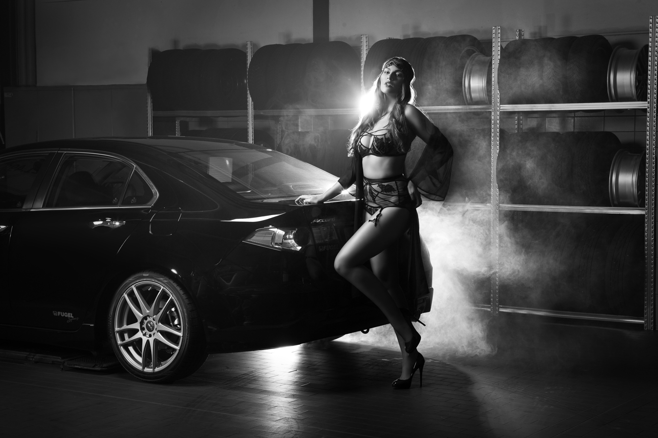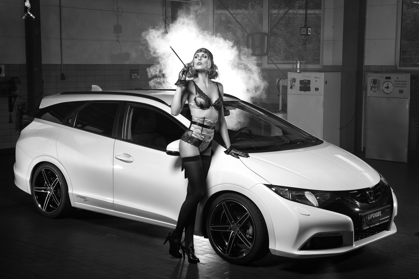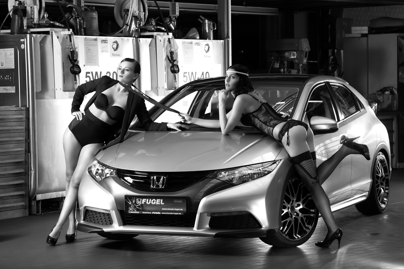 Autos und Frauen. Ein ziemlich heißes Duo! Leider zu oft Klischee behaftet. Nein, Frauen auf/in/neben müssen und sollten nicht „billig“ aussehen. Das Autohaus Honda Fugel wollte edle Bilder in schwarz/weiß. Zusammen mit Katja Maaßen Visagistin und Jean Mantis Make Up, kreierten wir einen sehr edlen 20er Jahre Look. Mit wahnsinnig schönen Models, edlen Autos und durchaus fotogenen Werkstätten entstanden diese fantastischen Fotos für den Kalender „Cars&Girls 2015“!